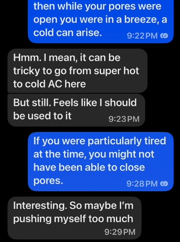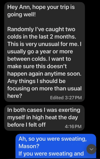 Cold is not a friend to the body. The body will do everything it can to get rid of it. And then, in our culture, we blame the body for misbehaving. The body doesn’t make mistakes. It is constantly responding and doing its utmost best.