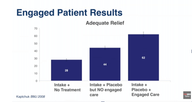 “When a person feels sick and you go into an environment that’s designed to help you, where everyone wants to provide you relief, the brain’s processing of sensations, self awareness and symptoms changes sometimes in a very positive way.”[6]