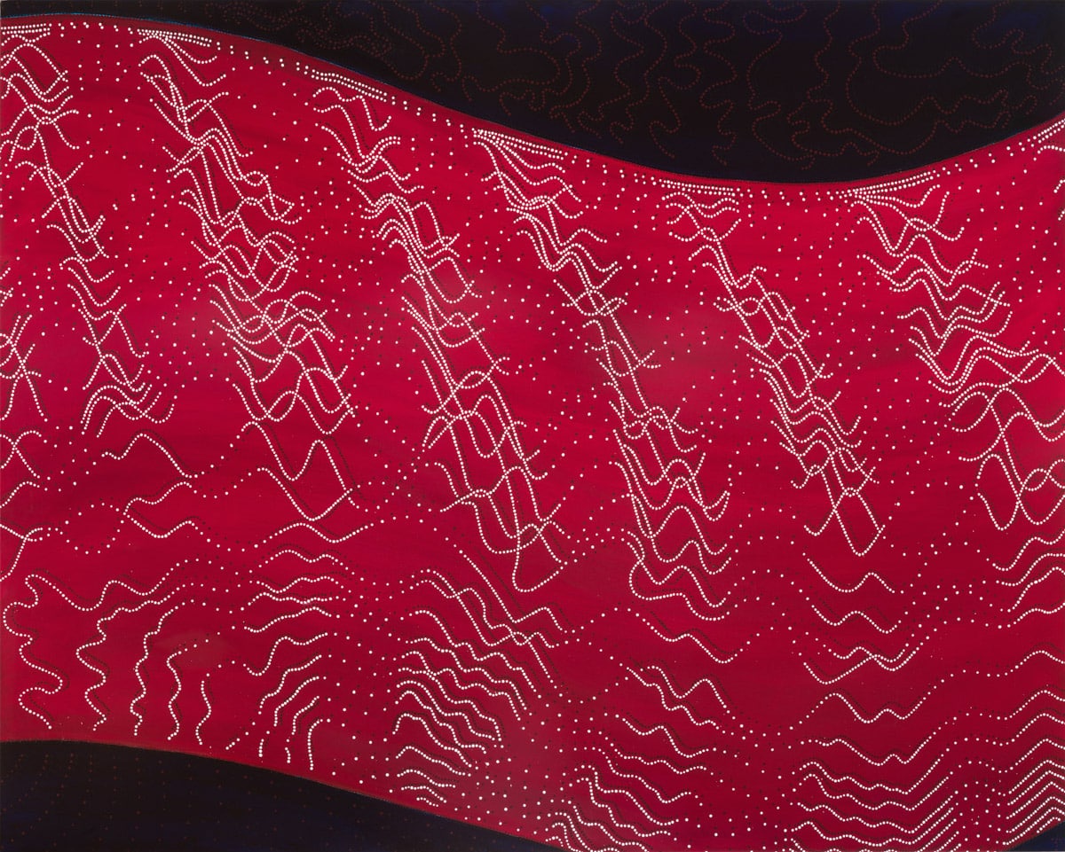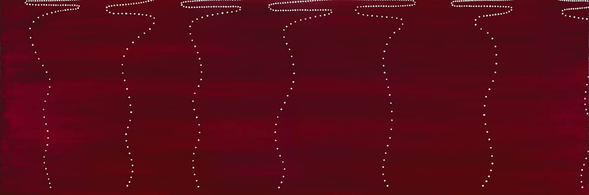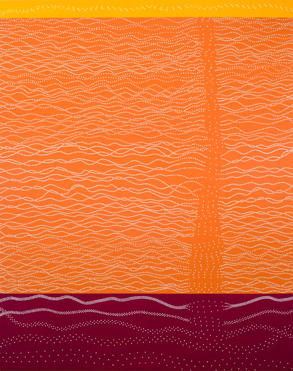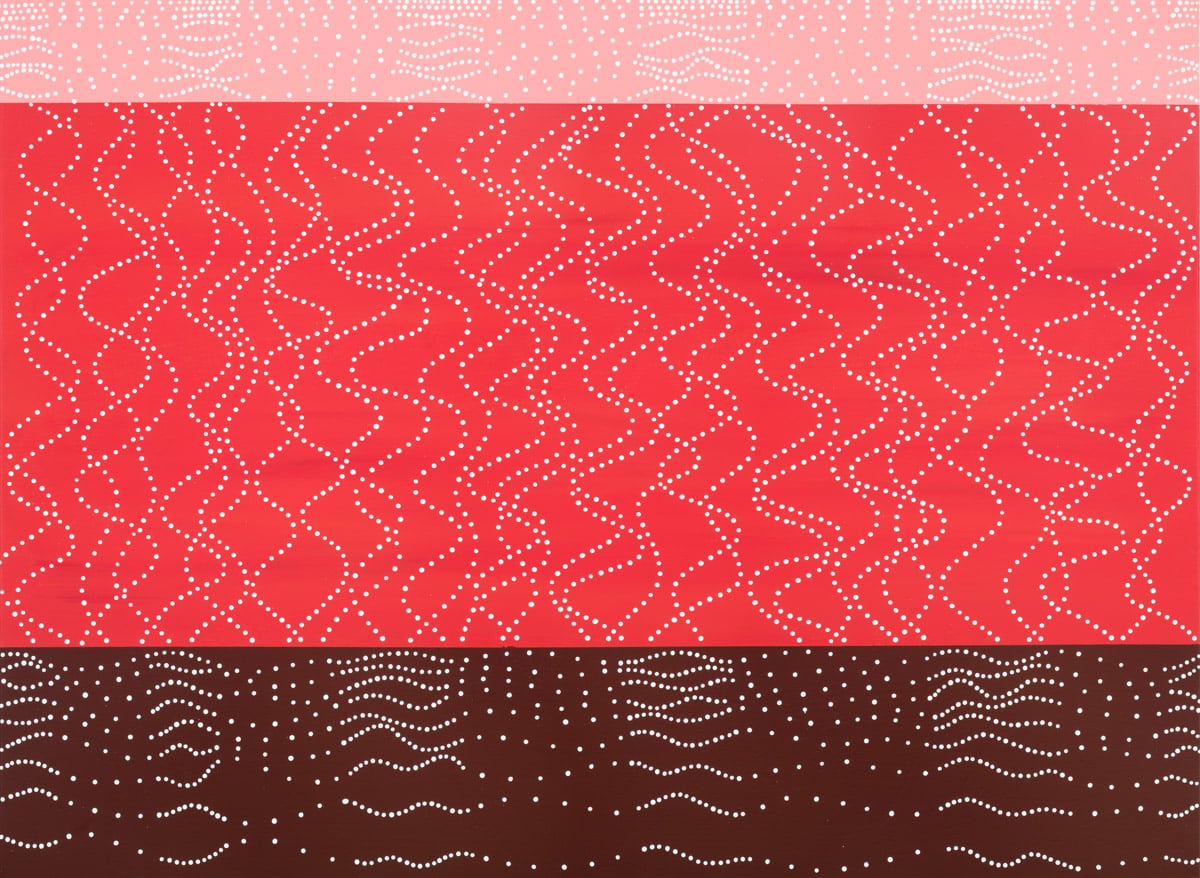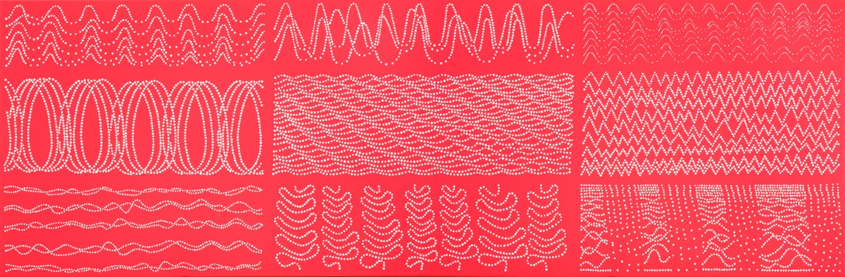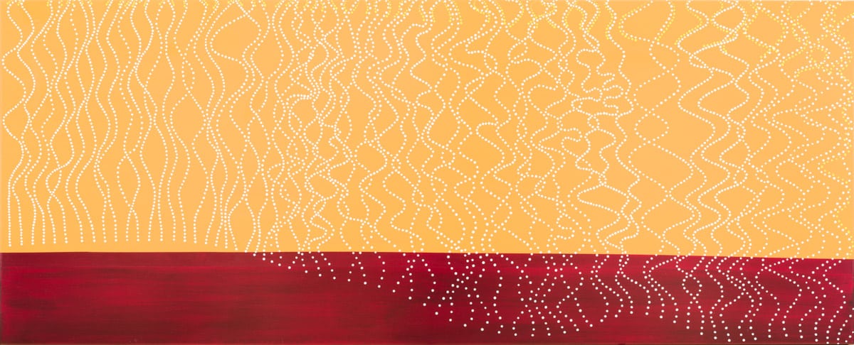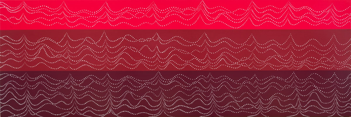 I painted these works with natural mineral pigments from different locations in Australia. The dot painting techniques are borrowed from the Australian Aborigines (the oldest living art tradition in the world). These artists paint the absence of separation between the viewer and the viewer’s vision of the world. They celebrate that the number of ways of seeing is limitless. In my pulse paintings, these techniques enable the pulses to move, to occupy and release space, to be timeless, formless, substantial and palpable all at once. The pulse appears as a microcosm of the human landscape, timeless and boundless, imbued with rhythm, full of life.