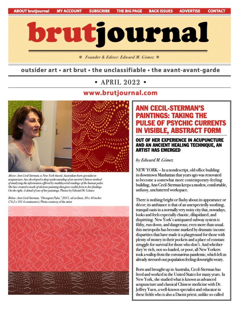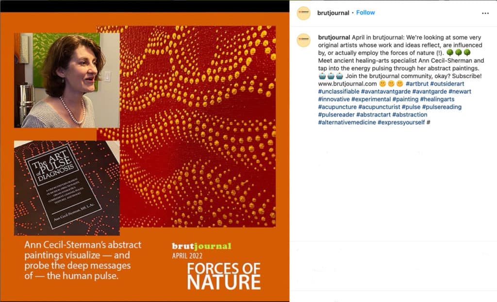 When I take pulses I see large, vivid and warm-colored, moving, complex three-dimensional images. Sometimes, I hear sound or even organized pitches; the pulse is the music of the body, perhaps the most profound music of all. For many years I kept this to myself, then a few years ago I began to paint them. They became useful teaching tools in discussions about medicine (my other love), as it’s almost impossible to convey the feeling and texture of pulses in words. More recently they’ve become healing tools around the world; looking at the paintings can produce a resonance in the body of the viewer that is profoundly calming.